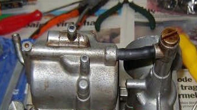 Abklemmen der Verbindung Schwimmerkammer zum Sekundärvergaser.