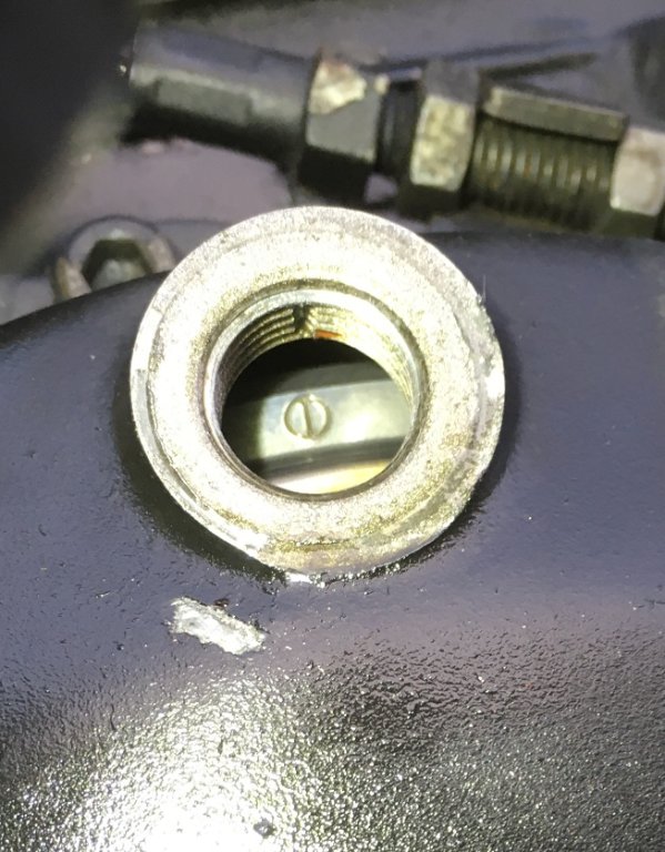 das hat mir jetzt keine Ruhe gelassen, ich habe das Schauloch geöffnet und einfach mal nachgesehen (nein, nicht beim Leerlauftuckern!).