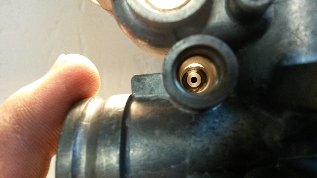 Am Chokekolben sitzt vorne eine Gummidichtung die die Fläche neben der Nadel zum Vergaser hin abdichtet.