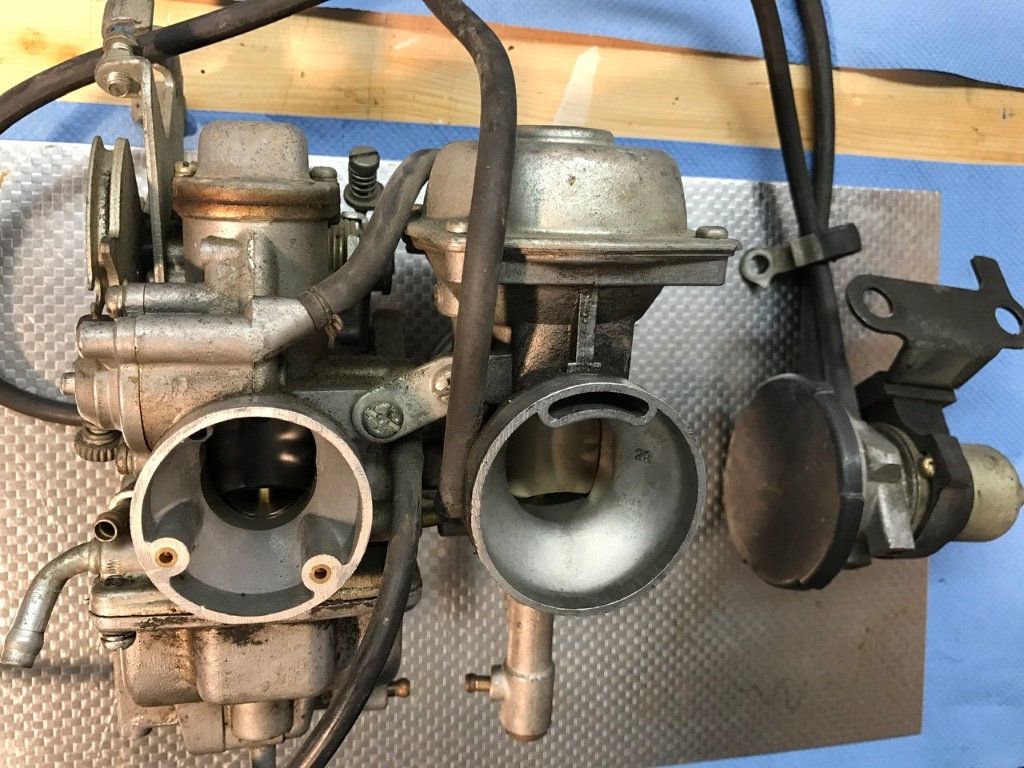 Einer der Schläuche geht an den Primärvergaser, einer an den Sekundärvergaser, und zwar zwischen den beiden Vergasern.