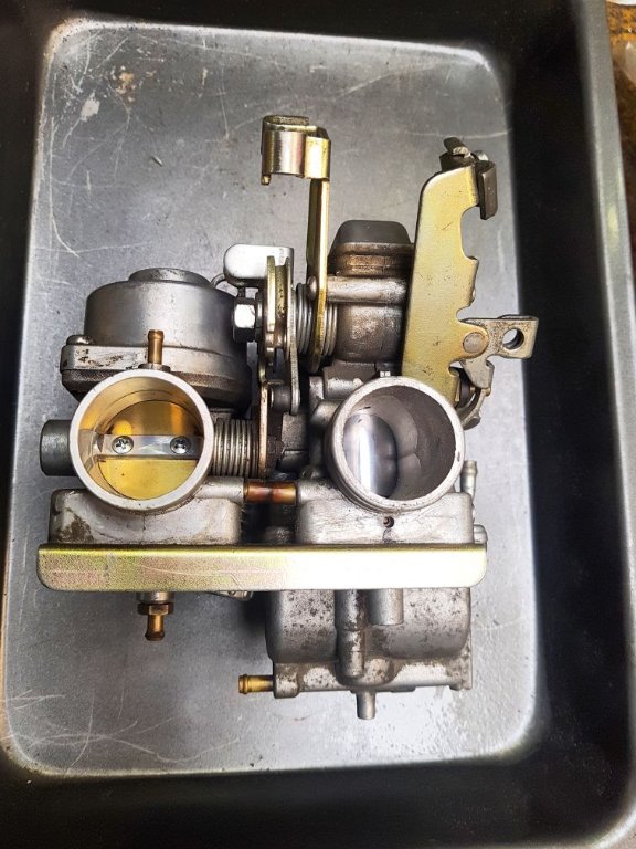 Die "normalen" (=nicht-Ténéré) XT-Modelle haben alle die Ansteuerung in der Mitte zwischen den beiden Vergasern. Dein Vergaser ist sowas wie eine vom Aussterben bedrohte Art, denn die Hauptdüse rechts ganz unten bricht gerne (festgegammelt), ist nicht mehr lieferbar und wird beinahe in Gold aufgweogen. bei Kedo je nach Größe 30 Euro (eine Düse) oder n.m.lieferbar. Daher wäre ich vorsichtig mit Tauschangeboten. Die kompletten Vergaser gehen gereinigt für so um die 150.- Euro weg. Du erkennst das auch an dem zylindrichen Unterdruck-Deckel, das ist der Vergaser mit dem Aluschieber rechts. Früher wurde häufig behauptet, die bringen etwas mehr Leistung und reagieren spontaner. Kann ich jetzt allerdings nicht bestätigen.