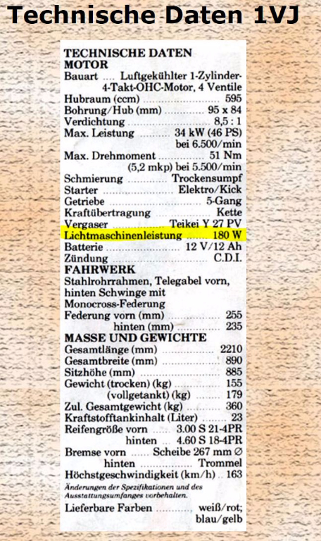Also ich hatte für die 1VJ 160 Watt in Erinnerung.
