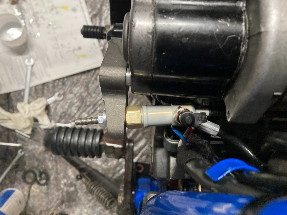 Fertig am motorrad sieht das so aus: Die herausragende schraube muss noch gekürzt werden, soweit steht nichts in weg.