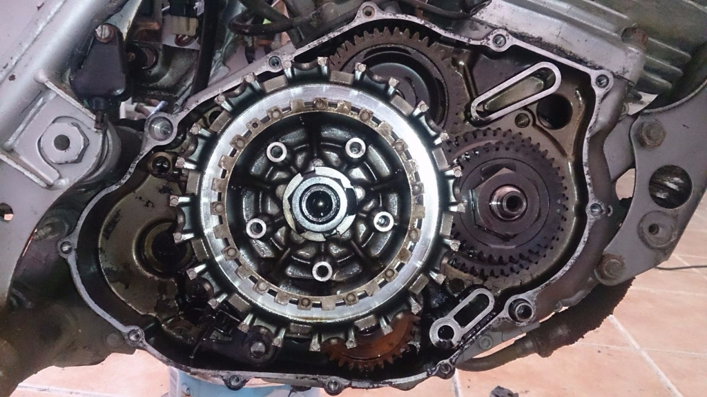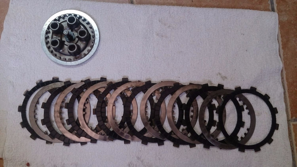 Nach zerlegen der Kupplung fand ich 8 Reibscheiben (2,8mm dick) und 7 edelstahl druckplatten (1,2mm dick), 5 spannfedern.