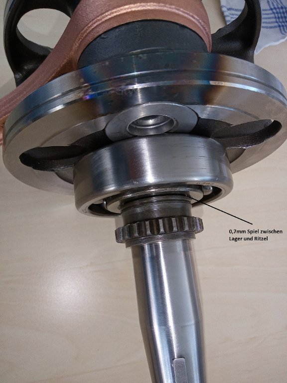 Das verwirrt etwas! Ich denke, das Lager sollte nicht nur einen definierten Abstand zum Ritzel haben, damit die Kettenflucht stimmt, sondern auch einen definierten Abstand zur Kurbelwellenwange damit es auch zum Gehäuse passt. Leider steht im WHB weder das eine noch das andere. Ich habe alle Verschleißmaße für die KW und aus dem WHB geht auch hervor, dass die Original-Lager beide C4 haben.Hallo Hans,