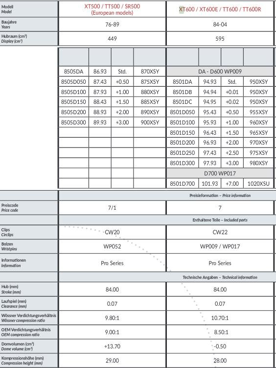 Für XT 600 Bj:84-04 Bez: 8501DA 94.93mm Std.