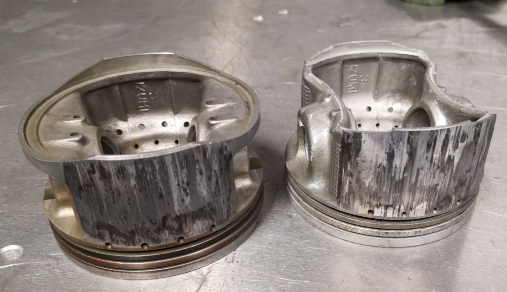 Beim Zerlegen hatte ich festgestellt, dass die Ölabstreifer hoffnungslos festgebacken waren. Durchblasegase?