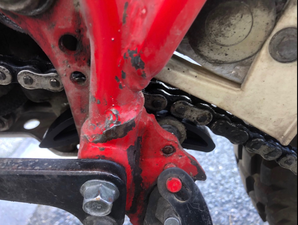 Ja diese „Abstützung“ habe ich bereits komplett entfernt. Es gehört wenn ein Teil der eigentlichen Laufbahn noch abgeschnitten. Dann kann die Kette aber gegebenenfalls auf dem Knotenblech vom Rahmenrohr aufgehen?