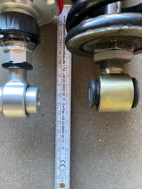 Ich habe das neue Federbein auf das einstellbare Maximalmaß von 385 mm gebracht: