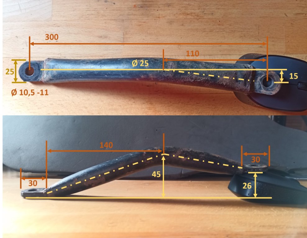Die bei mir verbaute Strebe sieht extrem nach Eigenbau aus, aber hier trotzdem mal die Maße. Danach fertigen würde ich aber nicht, sondern erst noch Verbesserungspotenzial ausarbeiten , da es mit einem anderen Endtopf schon zur Kollision kommen könnte, an einer Stelle sieht es schon knapp aus. Wenn da dann wirklich Bedarf da ist und es sich lohnt mehrere Streben zu fertigen, kann ich auch ein bessere Version ausarbeiten.