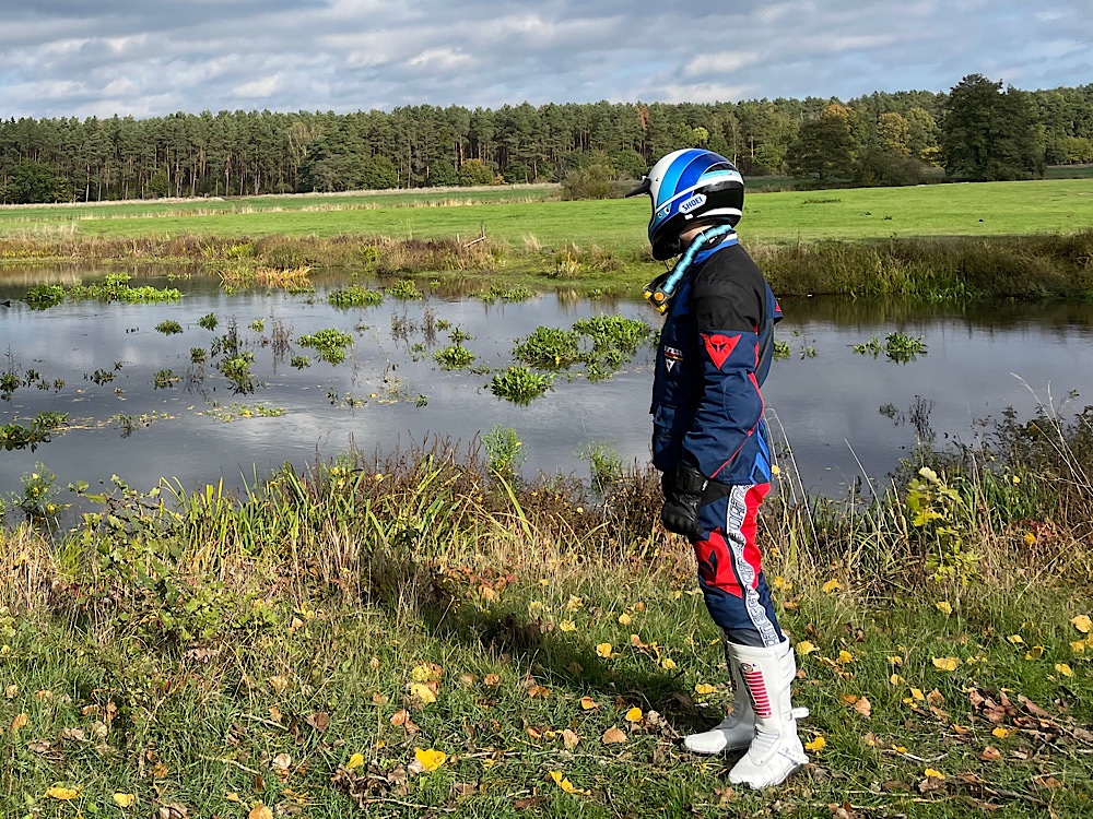 Wirklich schön und absolut bequem ist die Endurokombi von Dainese „Desert Anzug“,