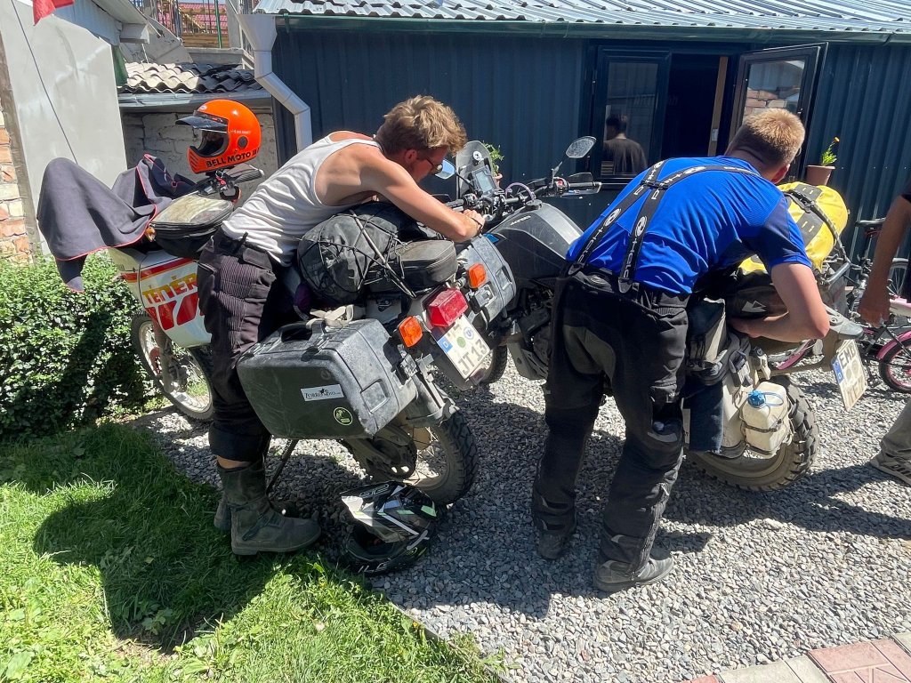 In Osh zu ZORRO MOTO, Bikes checken, Reifen wechseln (diese dämlichen k60 Trennscheiben jetzt wieder), Ventilspiel einstellen.