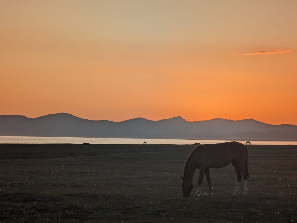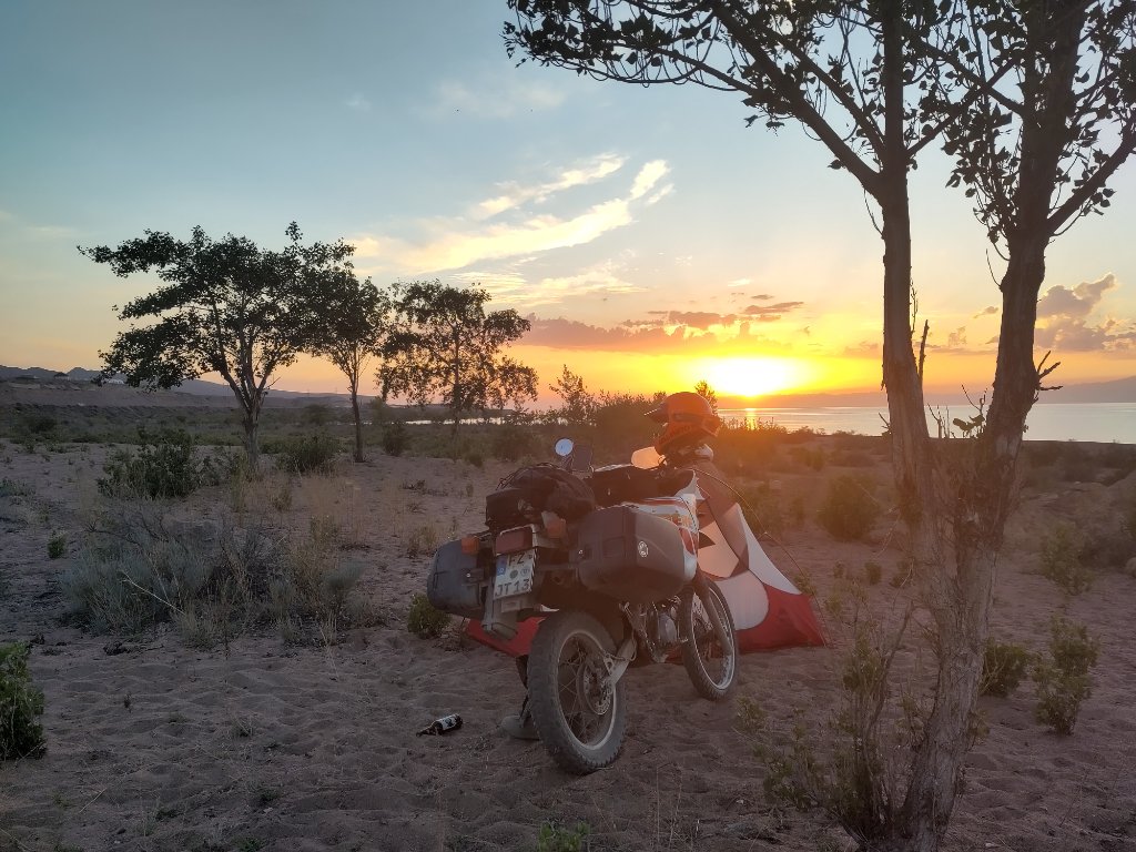 Am Yssyk Kul treffen wir wieder den Briten, mit dem ich quer durch Usbekistan und den Pamir gefahren bin, und wir machen Urlaub (hahaha...), das heißt ein paar Tage entspannen an diesem riesigen See. Im Hintergrund schneebedeckte Berge, vor uns der Strand und dieser riesige See, perfekte Temperatur, nach einem unbeschreiblichen Sonnenuntergang unzählige Sternschnuppen unter dem endlosen Himmel....