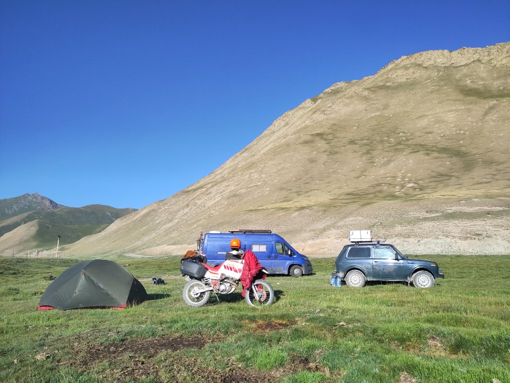 Tash Rabat, eine alte Caravanserai, dort treffe ich Pierre und Magalí mit Hundi, und wir lernen Dustin und Anja kennen, die aus Deutschland mit Niva angetuckert kamen.