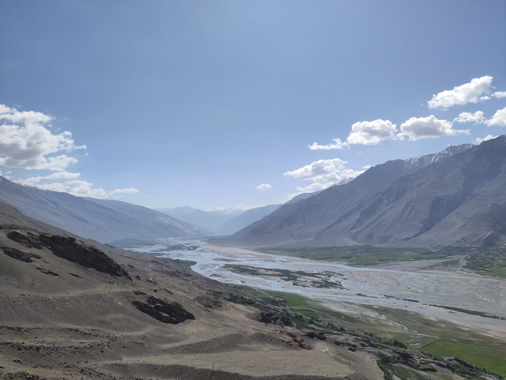 Im Norden wird der Fluss zu einem Bach, und auf zwanzig Meter winken wir uns zu mit einer afghanischen Karavane mit beladenen Yaks. Dunkelblaue Gewänder, keine Turbane, die Frauen unverschleiert. Das ist keine Touri-Attraktion, sowas sieht man nicht mehr oft auf der Welt: Menschen in ihrer Tracht und ihrem Leben, für die hat sich außer Zigaretten und Smartphones vermutlich kaum was geändert seit ein paar hundert Jahren. Ob die neue Regierung einen Einfluss auf sie hat? Oder ob diesen Menschen die Regierung schon immer egal war, und vice versa?