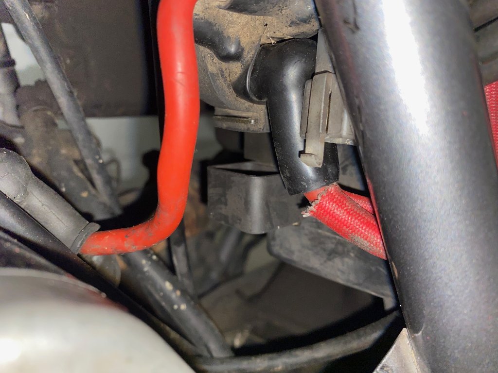 Unterhalb der Aufnahme des Anlasserrelais befindet sich eine Gummihalterung für die Aufnahme eines weiteren Relais (Bildmitte).