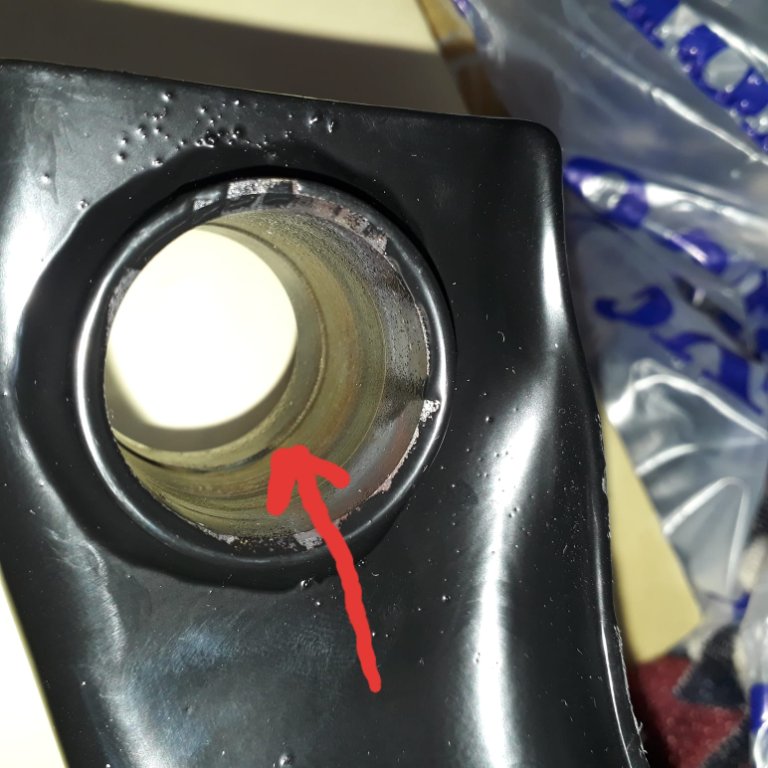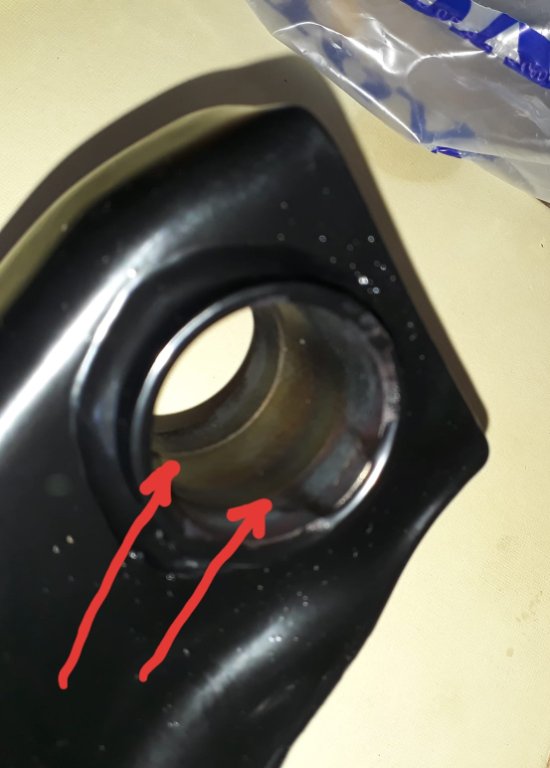 Bei neu gekauften, verstärkten original Volvo Querlenkern, ist die Aufnahme für die Gummibuchse, anders als früher und auch sonst nirgends im Aftermarket zu finden, gestuft ausgeführt. Siehe Bilder, da sieht man den Unterschied deutlich.