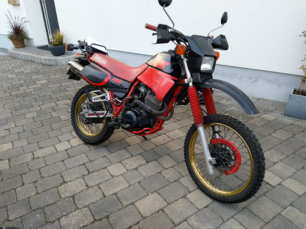 Da mich moderne 180 PS-Renner nur bedingt reizen und ich mit der VTR eh immer schon, sagen wir, im Bereich StVO+MwSt unterwegs bin, wollte ich mal etwas anderes ausprobieren, dass einen ganz anderen Reiz hat. Nämlich entspanntes fahren auf einen Eintopf, mit dem man auch mal einen Schotterweg nehmen kann. So kam es dann, dass ich bei kleinanzeigen eine zwar nicht restaurierte, aber doch für das Baujahr ganz ordentlich da stehdende 2KF aus '87 bei mir in der Nähe entdeckte. Sie sprang bei der Probefahrt kalt auf den ersten Kick an und lief gut, sodass ich sie gleich mitgenommen habe.