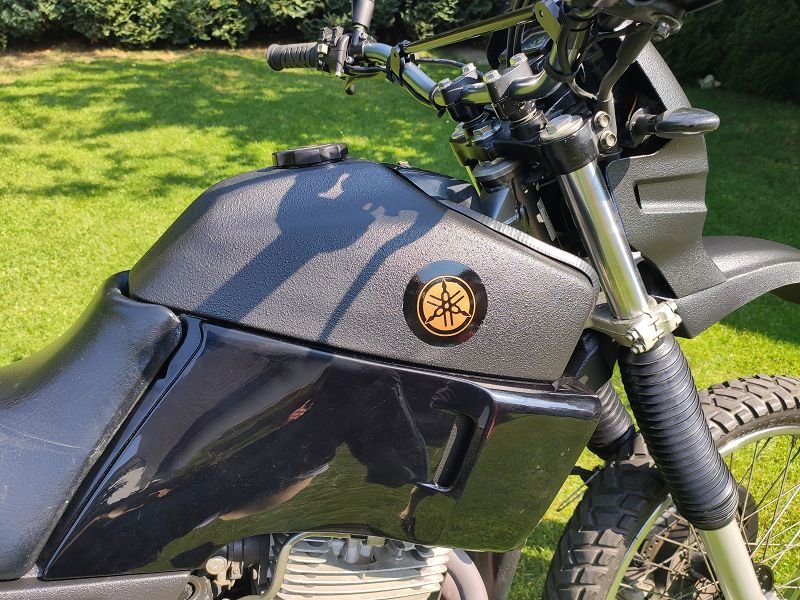 so sah sie aus: Das ist daraus geworden: Vorbesitzer hatte die mal auf die rechte Seite "gelegt". Die Tankverkleidungen fehlten und die entsprechenden Halterungen waren am Tank entfernt worden. Den Tank habe ich abgebeizt, grundiert und auf Logohöhe neu Schwarz lackiert. Danach Logo angebracht und mit Klarlack versiegelt, Rest vom Tank sowie die Kunststoffverkleidungen mit Upol Raptor lackiert.