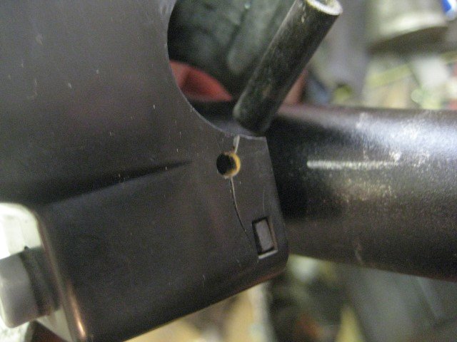 Das verdrehen des Schalters auf dem Lenker kann man verhindern, in dem man an der Innenseite der Blechschelle doppelseitiges Klebeband verwendet.