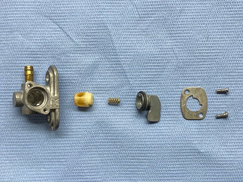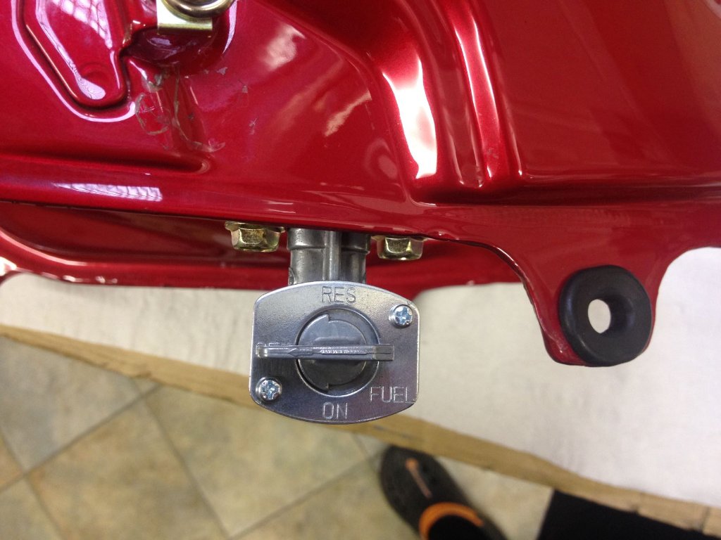 Bild zeigt den rechten Hahn (original nicht mehr lieferbar) - Problem bei 1VJ-3AJ ist der auf der rechten Seite verlaufende Krümmer - speziell bei manchen Nachrüstkrümmern (Leiro) ist da sehr wenig Platz für den Benzinhahn: