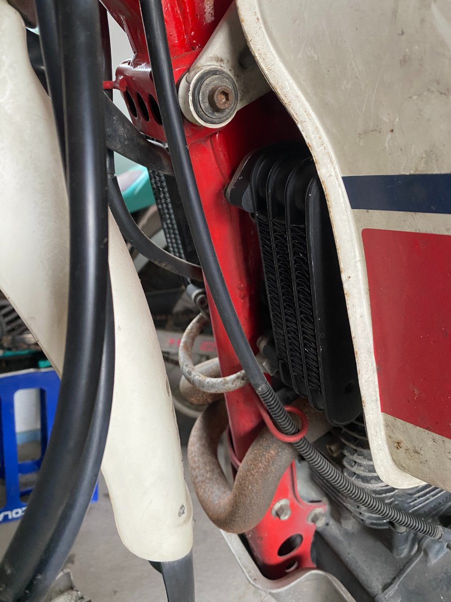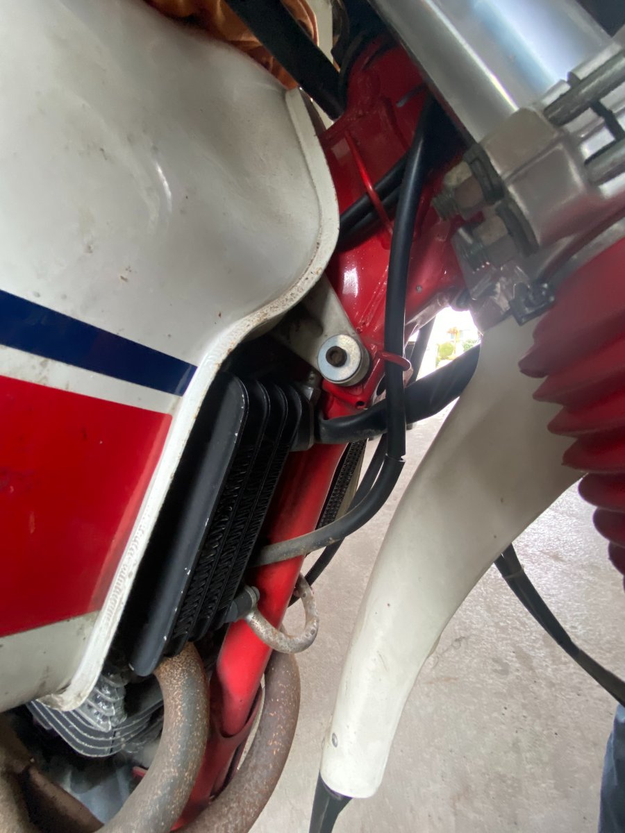 Der zweite Ölkühler liegt auch top im Windschatten der Gabelbrücke… bringt, denke ich, nur wenig mehr…