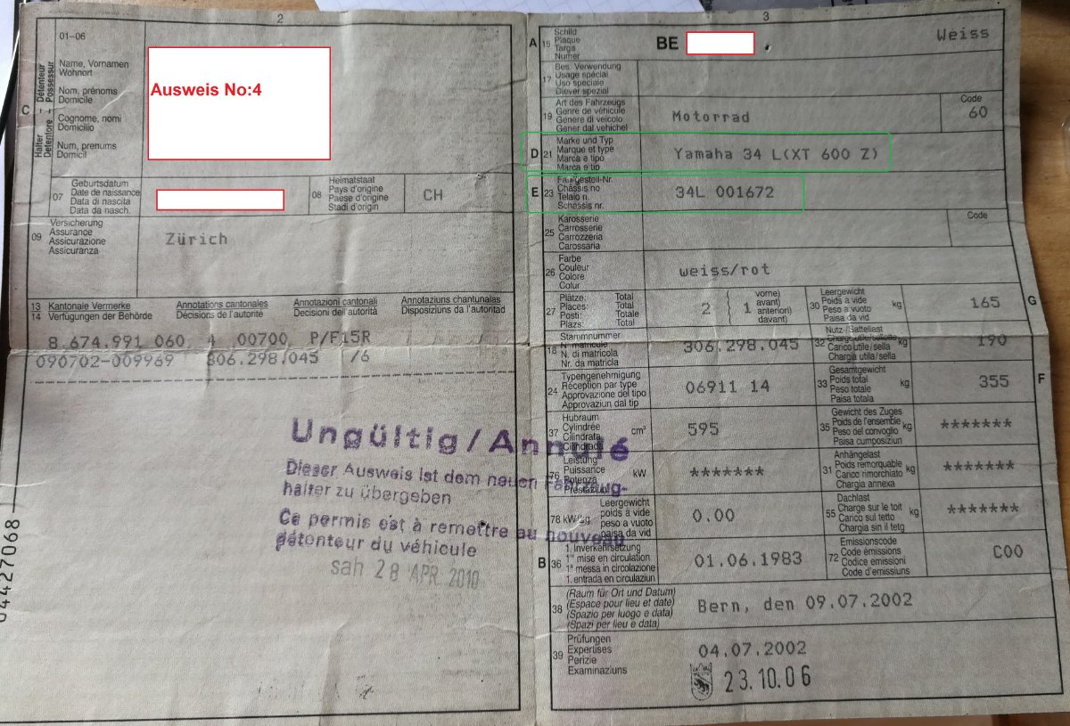 XT 600Z 3DS 1988-90 Schweizer Modell der 3AJ