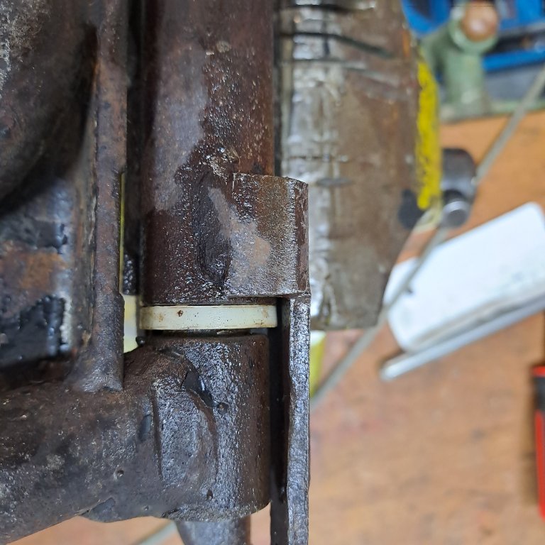 Was mich stutzig macht, eine Seite des Gelenks liegt bündig an der Kunstoffhülse, bei einer Seite ist ein ca 2mm großer Spalt. Ob die Schwergängigkeit jetzt aus Rost / Gammel, oder Schlag / Verzug, oder eben dem Schleifen an der Hülse kommt kann ich nicht sagen.
