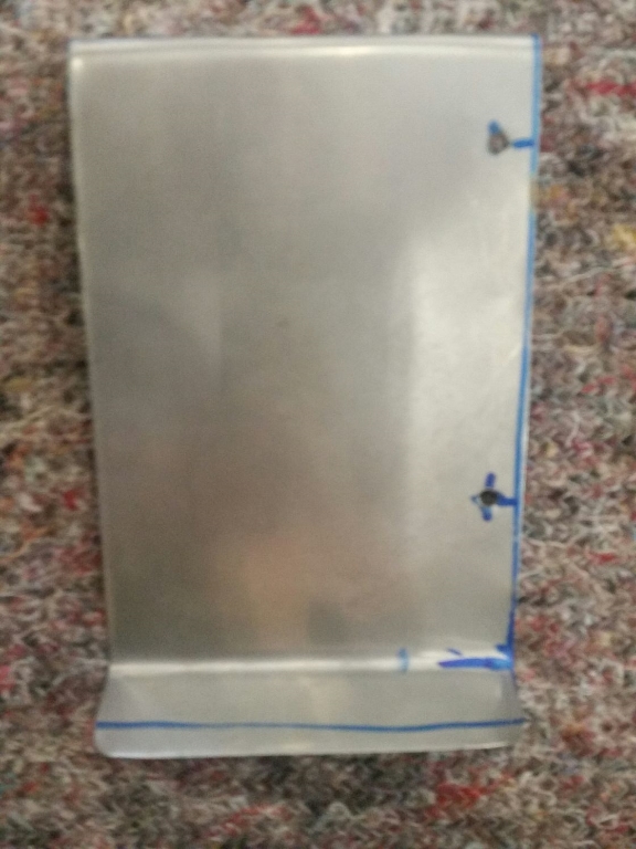 Das Edelstahlblech ist 18cm breit, 10 cm hoch. Ich hab es links gegen die Fahrtrichtung gebogen und rechts mit der Fahrtrichtung. So kann die Luft da längs gleiten. Jedenfalls ist es hinter dem Blech nicht heiß und die Kiste springt viel besser an.