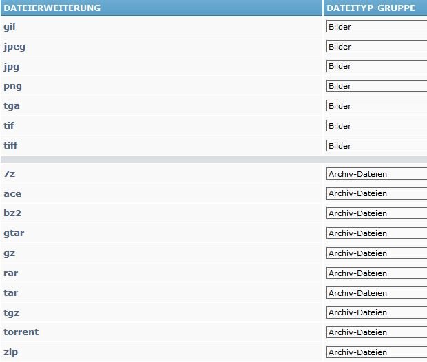 Und für Dokumente: ai, doc, docm, docx, dot, dotm, dotx, odg, odp, ods, odt, pdf, ppt, pptm, pptx, ps, rtf, xls, xlsb, xlsm, xlsx