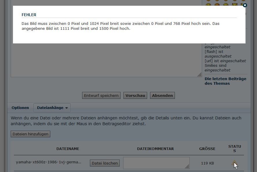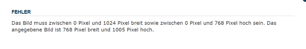 Beim alten Forum gab es einen Hinweis auf die max. erlaubten Maße eines Bildes.