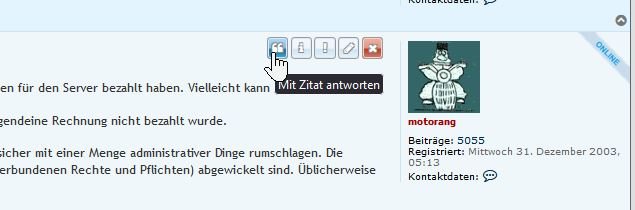 Oder man klickt in einem Beitrag eines Themas auf die Anführungszeichen, um mit einem Zitat des Beitrags zu antworten.