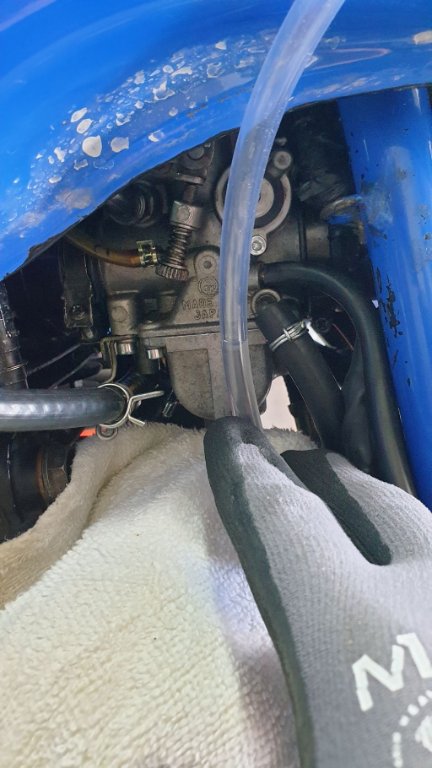 Tipps und Tricks noch dazu, bevor ich es wieder vergesse und es als "normal" ansehe: Hast du eine Tenere, hast du einen großen schweren Tank der jedesmal wieder ab muß wenn du an den Vergaser willst. Was bedeutet, die beiden Benzinschläuche abnehmen und entleeren, raus fummeln und rein fum...