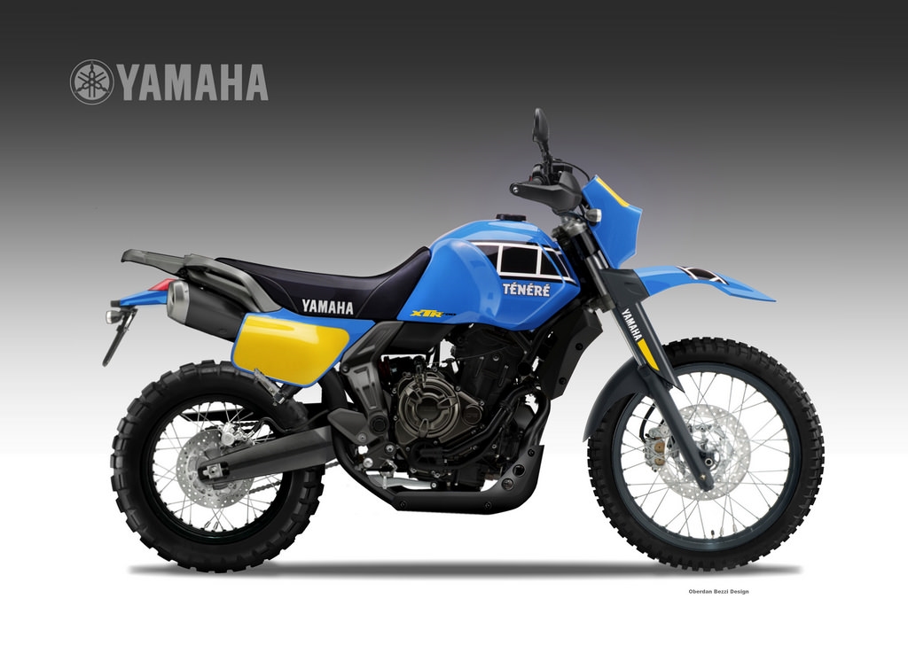 Ich bin ein Fan der Ur-Tenere (1983 - 85) und der 1VJ (1986/87). Wenn es um das Design geht, gefällt mir der Purismus der Vorgänger (XT 550, XT 500) sogar noch besser (keine Lampenmaske, wenig Plastik). Sämtliche Versuche nach 1988 die XT Tenere zu modernisieren, empfinde ich designerisch als Katastrophe. Immer mehr Plastik, tieferliegende Kotflügel usw. XT 660 Z, XTZ 750, XT 1200 Z, die Concept Studie T 7. Immer größer, fetter, verkleideter, leider nicht meins. Man entfernt sich immer weiter vom Original anstatt das Original in die Moderne zu transportieren. Da gehe ich lieber zurück zum Original. Die XT's von Sonauto zum Beispiel: XT 500, XT 550, XT 583 mit großem Tank. Puristisch, aber leider etwas eckig. Warum schafft Yamaha es nicht Originale der 70er und 80er neu zu designen? Wenn es um Design geht, denkt man unweigerlich an Italien. Irgendwann stieß ich auf die Studien von Oberdan Bezzi Design; unglaublich: