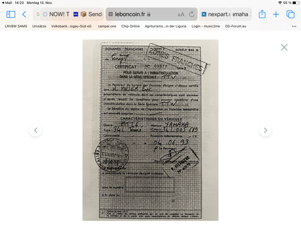 doch nicht ganz so einfach die Sache. Die Zulassungspapiere sind nicht konform, da es sich um eine spezifische Zulassung für eine Region in Frankreich außerhalb der Europäischen Zone handelt: Pays de Gex, das eine französische Zone ist, aber an die Schweiz grenzt, es ist eine Freizone mit einem anderen Steuersystem.