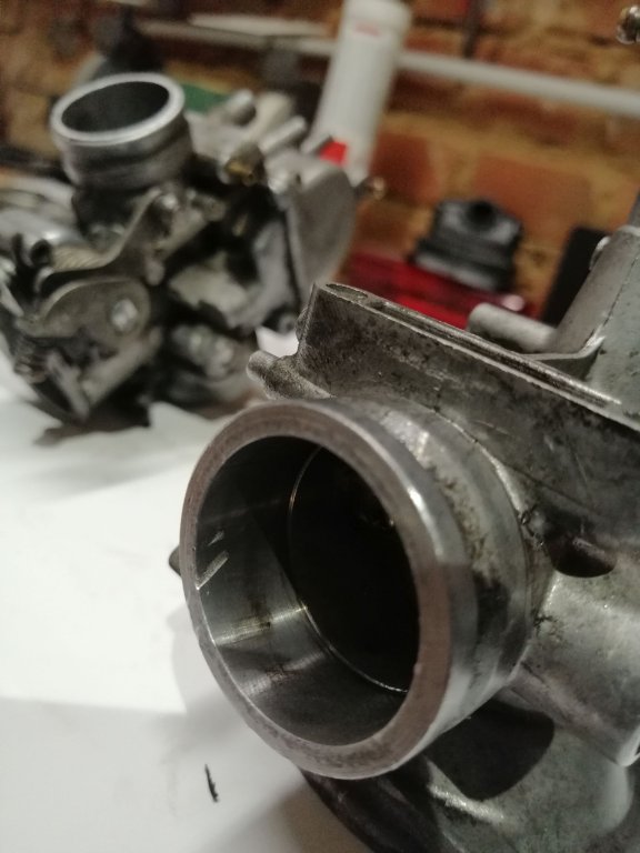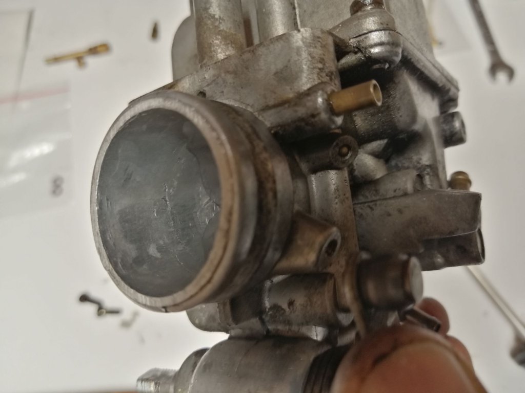 • Die beiden Kratzer auf der Ansaugstutzenseite würde ich nur etwas glätten, ist zwar ärgerlich aber deswegen wird der Vergaser nicht seine Funktion verlieren