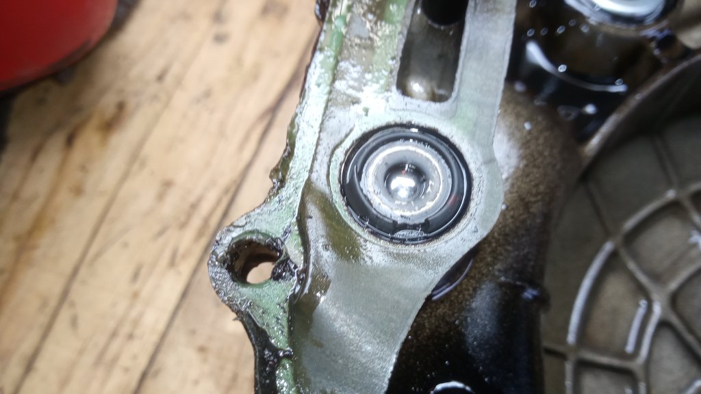 Frage3: Was ist das auf dem Bild für ein Sackloch mit M8 Gewinde im rechten Kurbelgehäuse über dem Primärantriebsrad - reine Neugierde.
