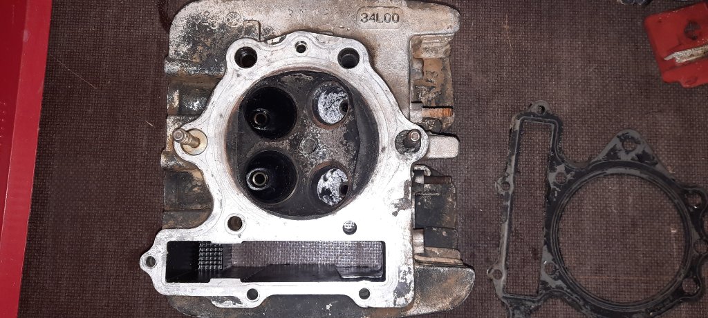1 Stück 34K01 - der hat einen Bund oben zum Kopf, den ich so noch nie gesehen hab... von den Stehbolzenabständen würde er zu den beiden brauchbaren Köpfen passen, ist aber kein Kolben dabei :-(