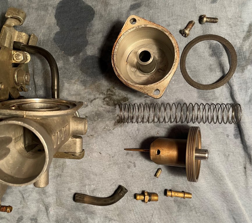 Den Sekundärvergaser habe ich anschließend zerlegt. Siehe Photos. Alle Teile erscheinen mir in einem guten Zustand. Keine Riefen oder ähnliches.