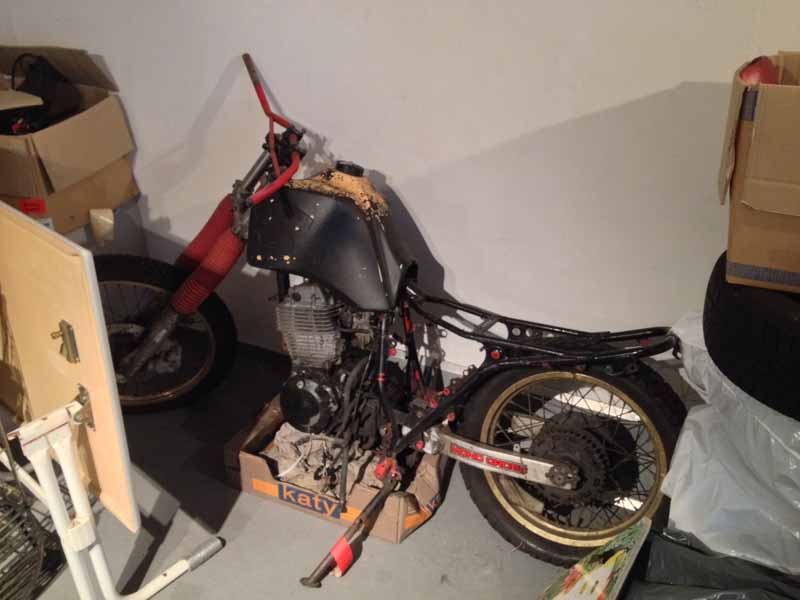 Ein Bekannter bietet mir das Motorrad an. Doch ob ich sie nehmen will und mir die Mühe eines Wiederaufbaus antun möchte hängt zunächst davon ab ob der Motor nach 7 Jahren Standzeit noch läuft.