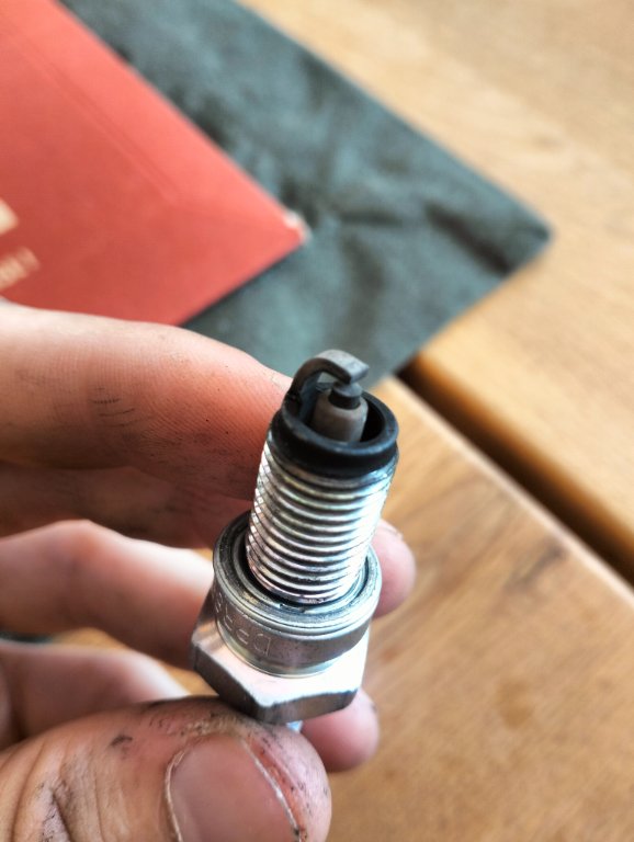 Habe sie letztens mit choke einfach nur gestartet und laufen lassen. Der Anfang war ganz normal (Rasenmäher) und ganz allmählich wurde sie langsamer und langsamer wie quasi ohne choke und ist bei einmaligen leichten Gasgeben sofort ausgegangen. Auch einmal um den Block ist sie nicht gekommen. Mich wundert es nur, weil sie so normal klingt beim Start. Habe Zündkerzenbild überprüft, hätte gesagt etwas zu fett. (Siehe Bild) Habe eine halbe Umdrehungen reingeschraubt, bin jetzt bei 2. Ich bin leider etwas überfragt, was ich noch prüfen kann.
