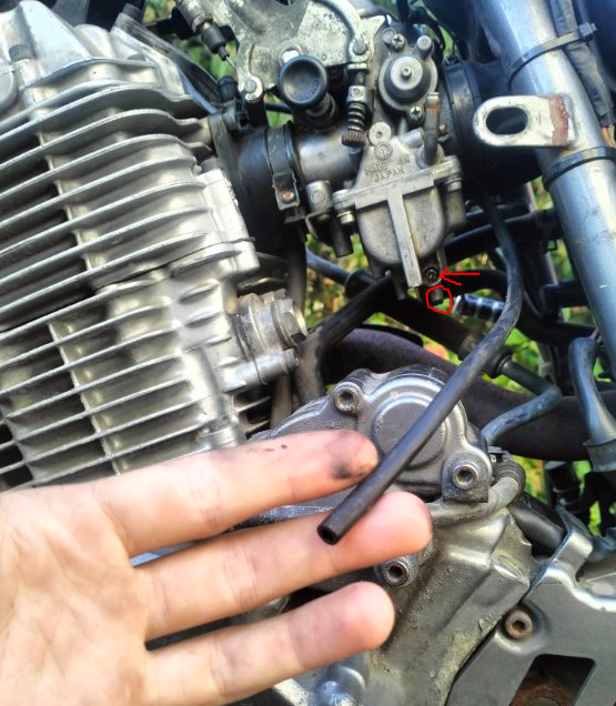 Dann die Schraube an der Schwimmerkammer etwas aufdrehen(nicht ganz raus) Bitte ein sehr gut passendes Werkzeug benutzen, die sitzen gerne fest und sind schnell rund gedreht.