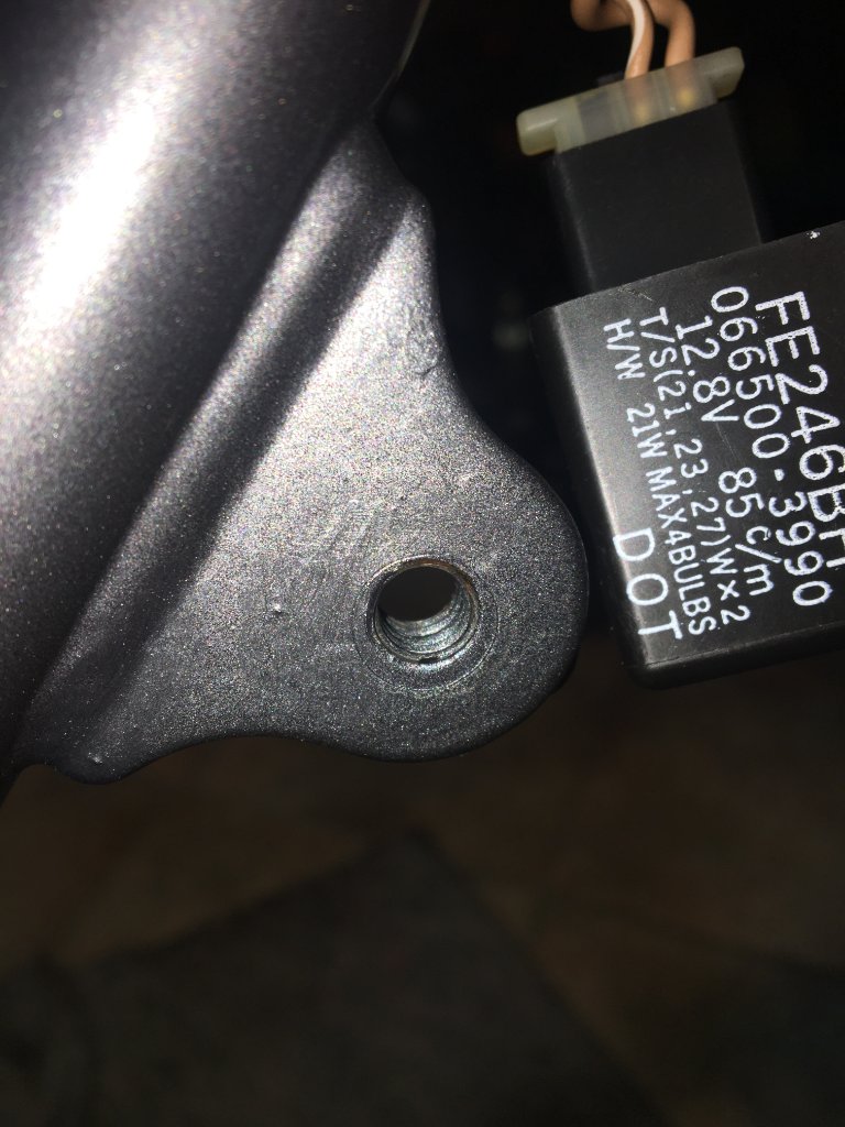 Hier ist normalerweise der Soziushalter befestigt, da ich ohne Soziushalter fahre waren die Verschraubpunkte (rund ums Loch) blank sichtbar - unschön. Also ausgebessert - Übergang ist kaum zu erkennen: