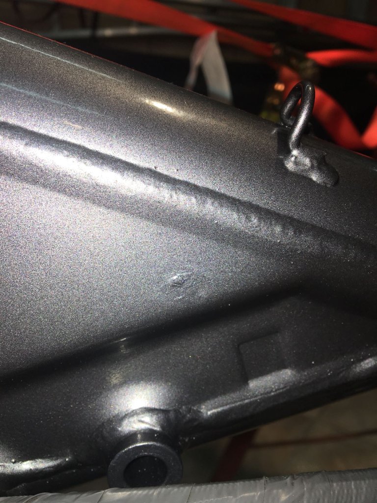 Hier ein kleiner Lackabplatzer: Erhebung sichtbar, ist aber eh unterm Tank