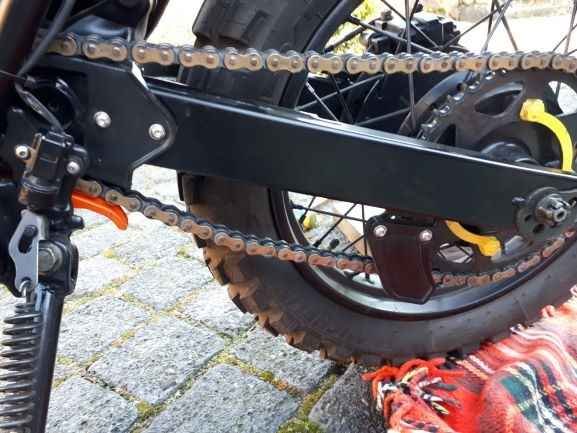 Mit dem Kettendurchhang muss ich noch mal sehen ob 5 cm nicht doch etwas viel ist. Schlägt dann gerne beim untertourigen fahren oder auf dem Feldweg. aber das kann man ausprobieren.