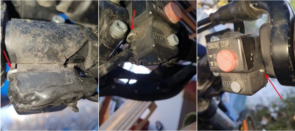 Gebrochene Halterung am Start/Stopp/Killswitch.