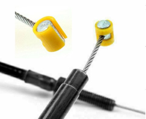 Ich glaub dieses Kunststoffteil ist aufs Seil gefädelt ... bevor der Nippel aufgepresst wird