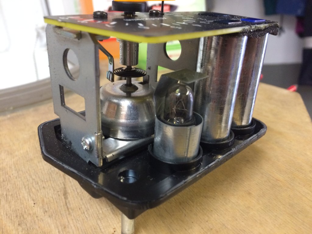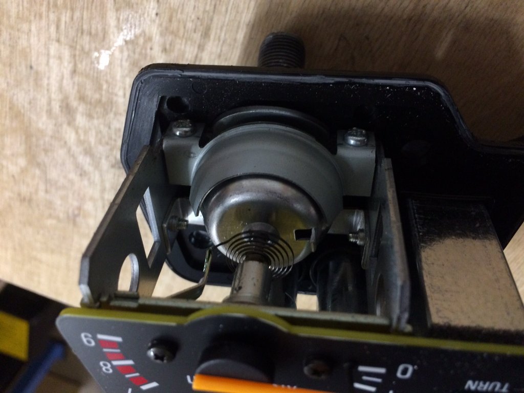 Ich hab das Ding dann gestern Abend unten mit dem Dremel geöffnet (untere Klebe/Rast-kannte), die Mechanik - ist ja das selbe System wie bei den Tachos: Manet wird über die Welle angetrieben, das Magnetfeld nimmt dann die Zeigerachse gegen den Rückholfederdruck mit hoch - dann mit Bremsenreiniger gesäubert und anschließend die Lagerstellen mit Autol Kriechöl etwas geschmiert.