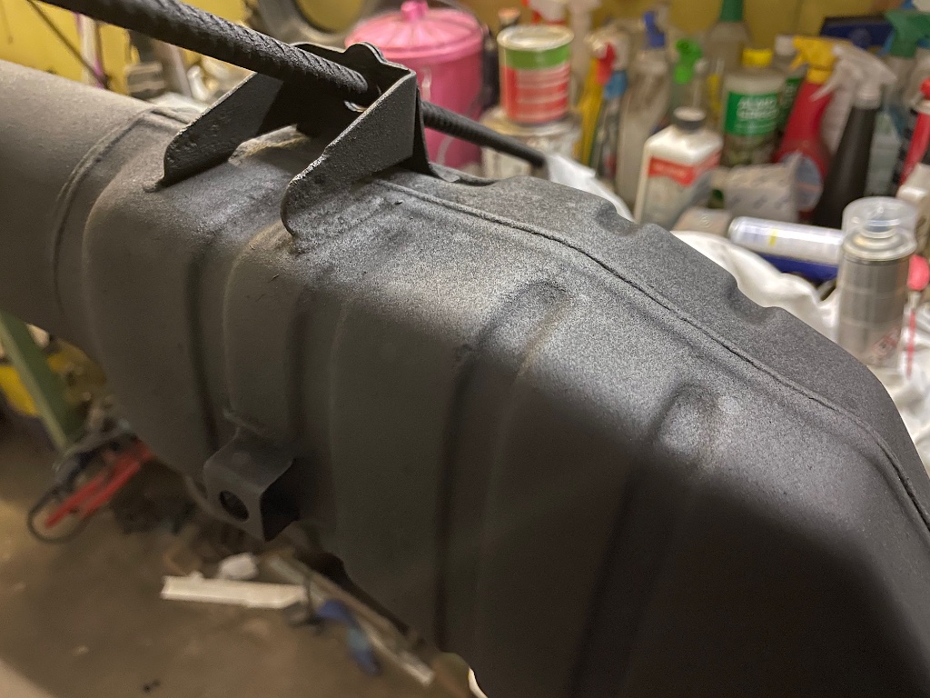 Im Anschluss nach einer Nacht trocknen habe ich vor den Auspuff noch mit hitzebeständigen Klarlack (Motip) überzulacken.