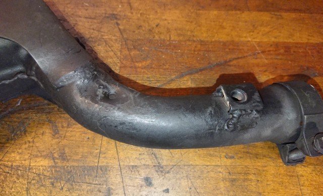 Konntest Du so den Befestigungspunkt für den Topf am Rahmen kurz hinter dem Krümmer nutzen?